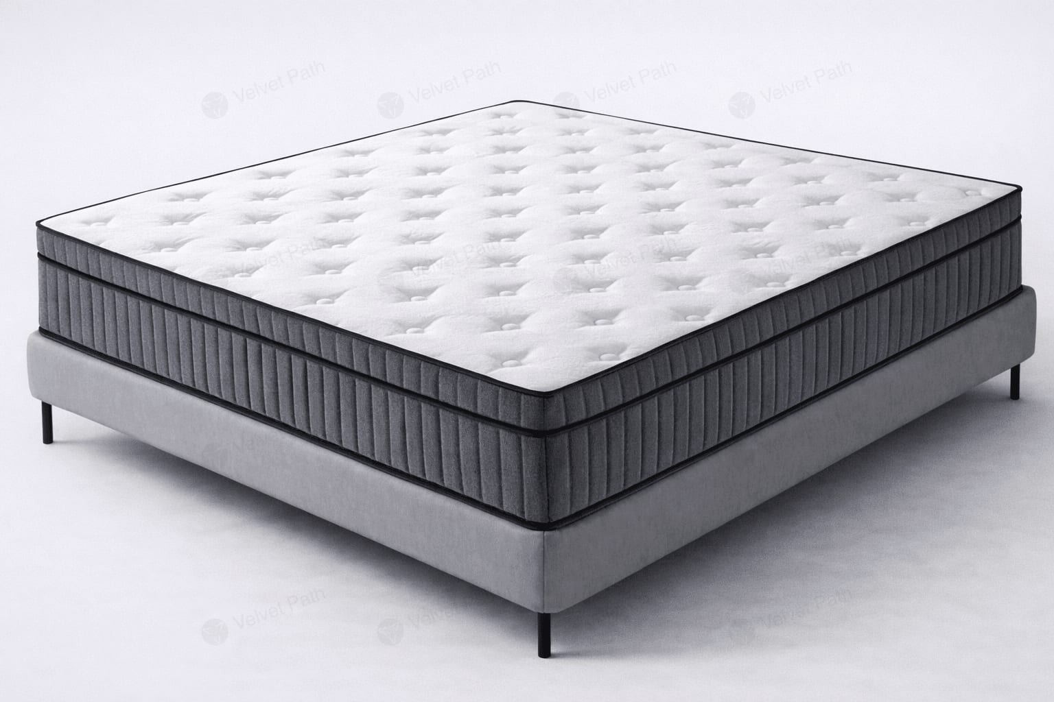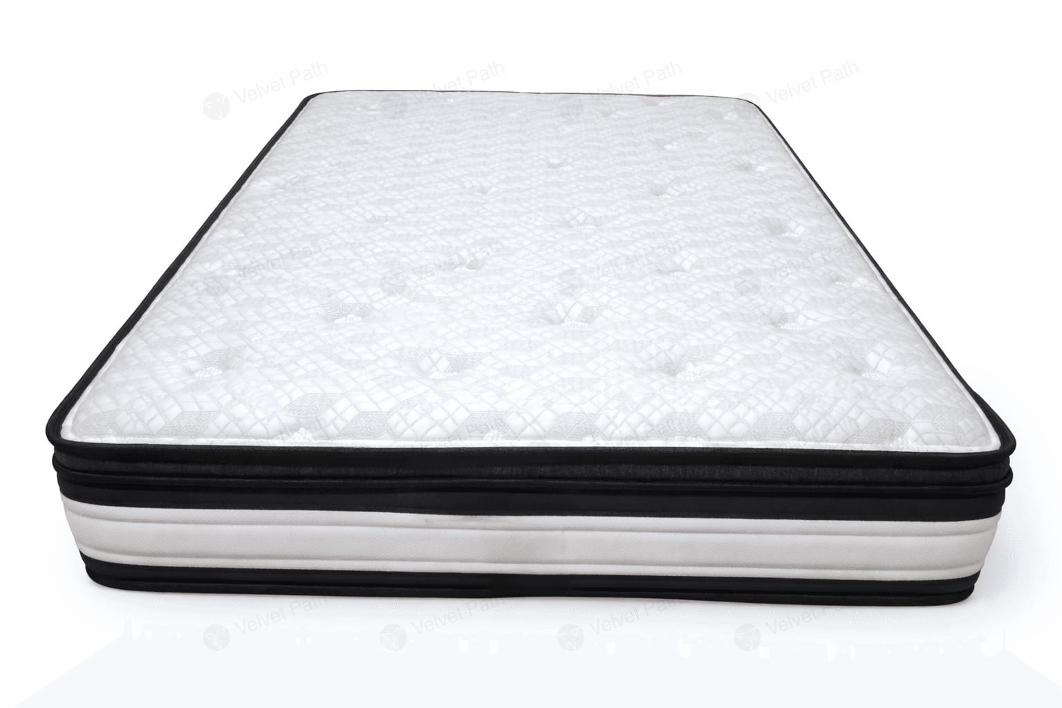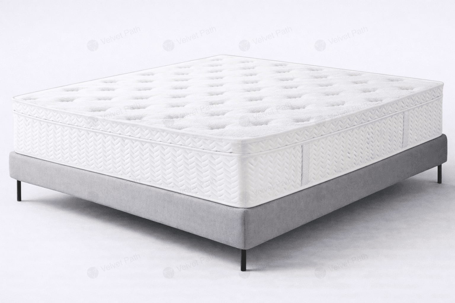 Внутри матрас собран на независимых пружинах в отдельных пакетах, которые помогают равномерно распределять нагрузку. Слои наполнения включают высокоплотную губку, динамический хлопок, шерсть, волокнистый хлопок Дюпон и шёлковую ткань, создавая мягкую, но поддерживающую поверхность.