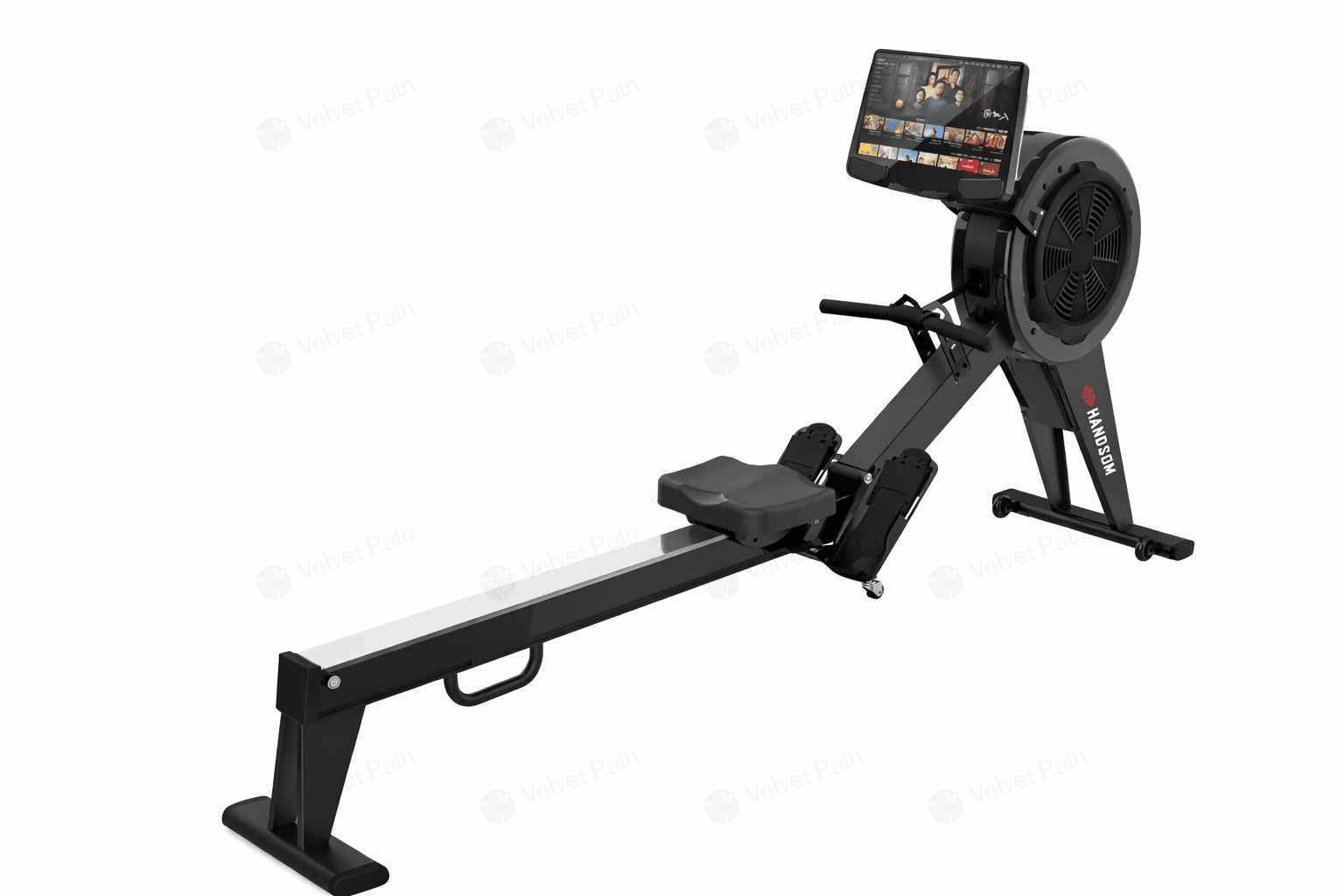 HANDSOM HSG972 — эллиптический тренажёр с передним расположением маховика и электромагнитной системой сопротивления. Модель рассчитана на интенсивные занятия и подходит для тренировок с акцентом на плавность хода и точную настройку нагрузки.