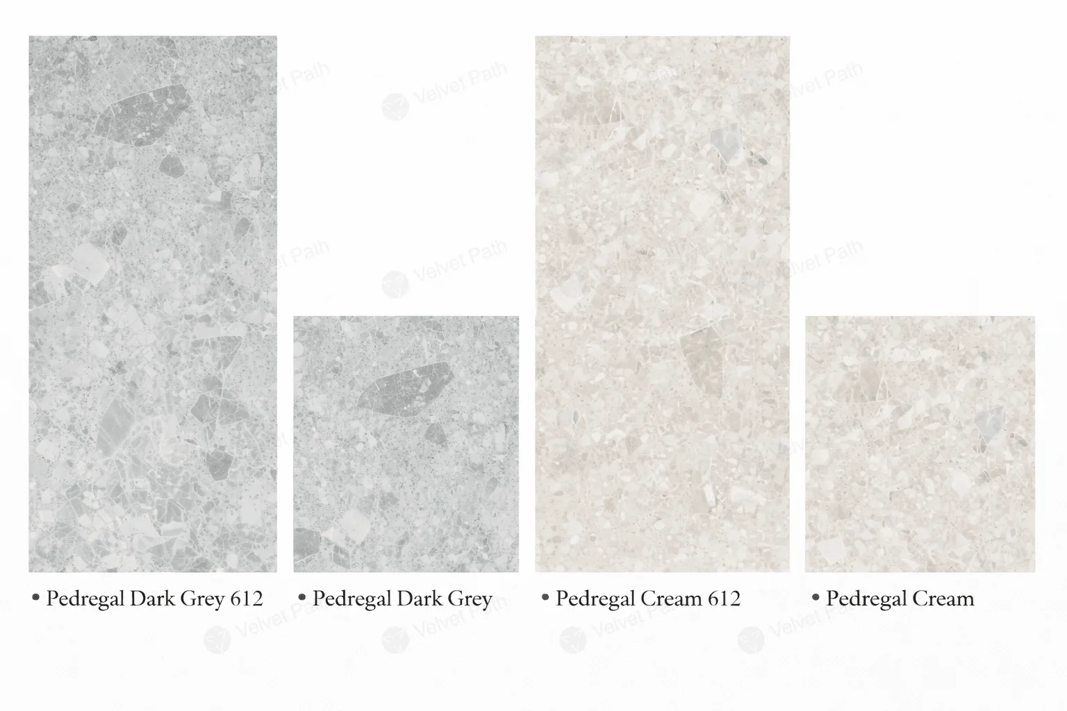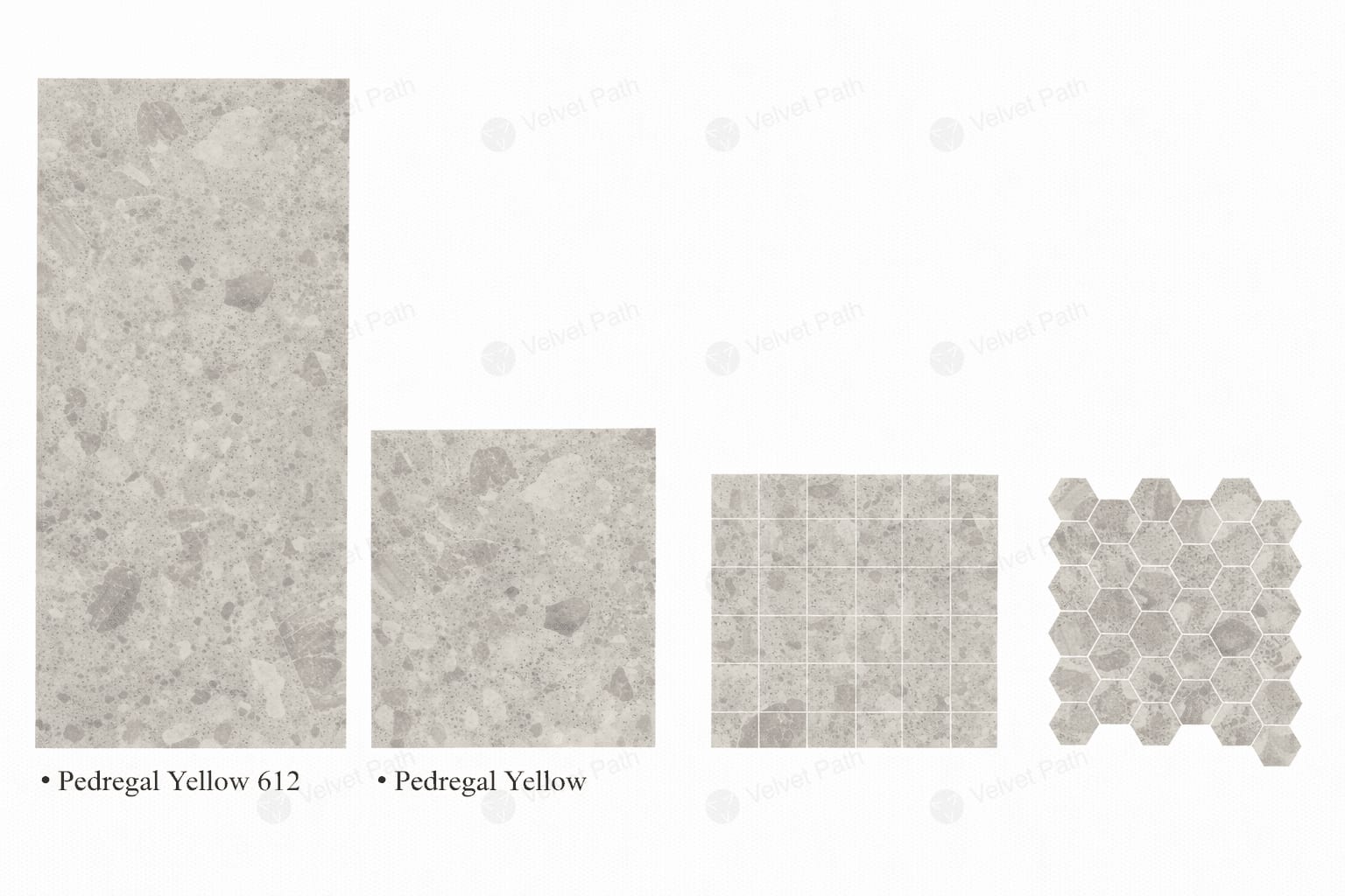 PEDREGAL — керамогранит с выразительной каменно-терраццо-подобной фактурой, который подходит для современных интерьеров. Текстурная матовая поверхность делает покрытие практичным в ежедневной эксплуатации и комфортным визуально.