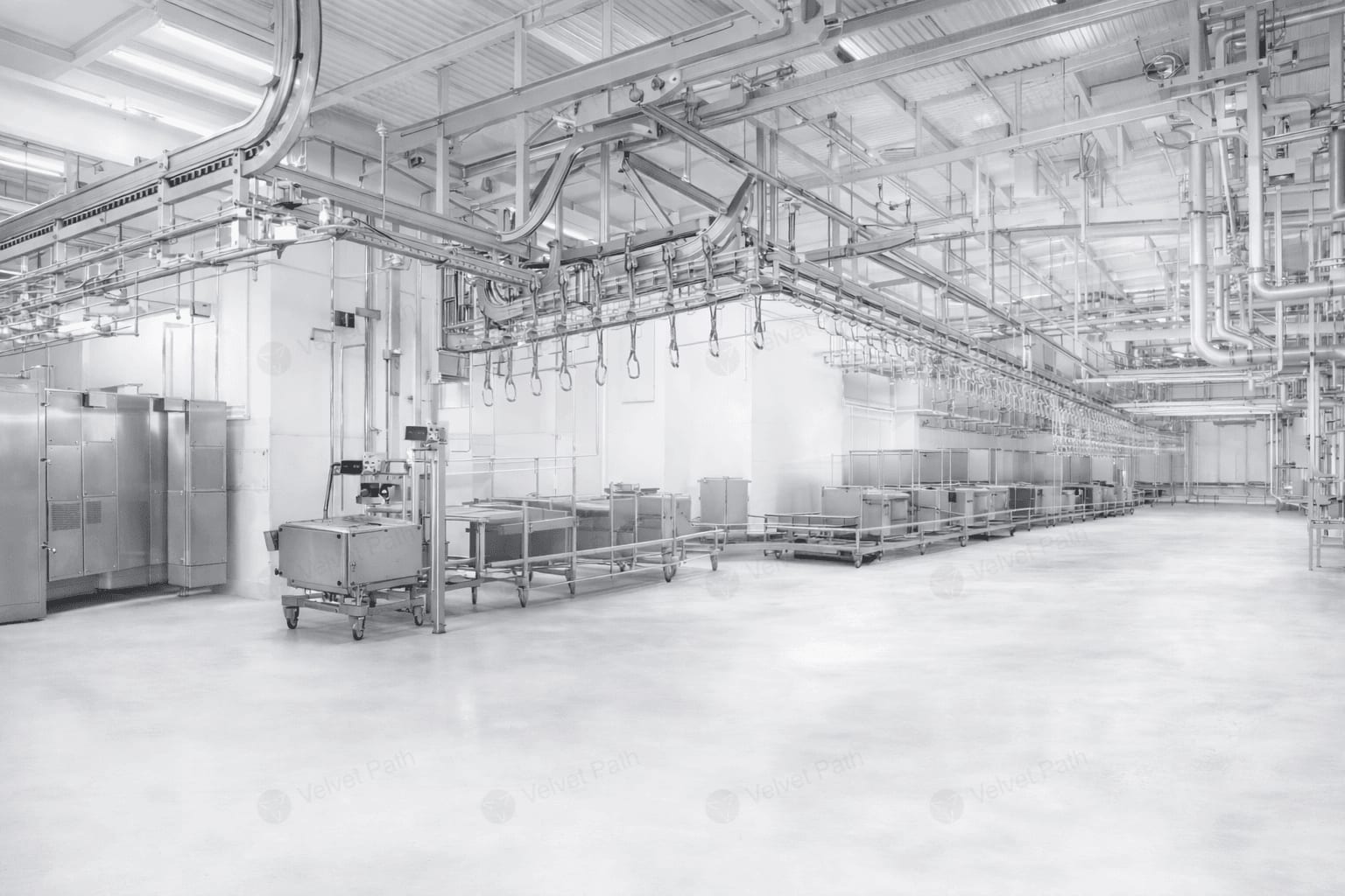 Линия убоя и первичной переработки кур 2000 голов/час — комплект оборудования для организации непрерывного потока от приёма птицы в клетках до основных операций убоя, ошпаривания, ощипа, обработки головы и ног, эвисцерации, охлаждения и упаковки. Компоновка построена вокруг конвейерной транспортировки и подвесной линии, что помогает стабилизировать производительность и уменьшить долю ручных операций на потоке.