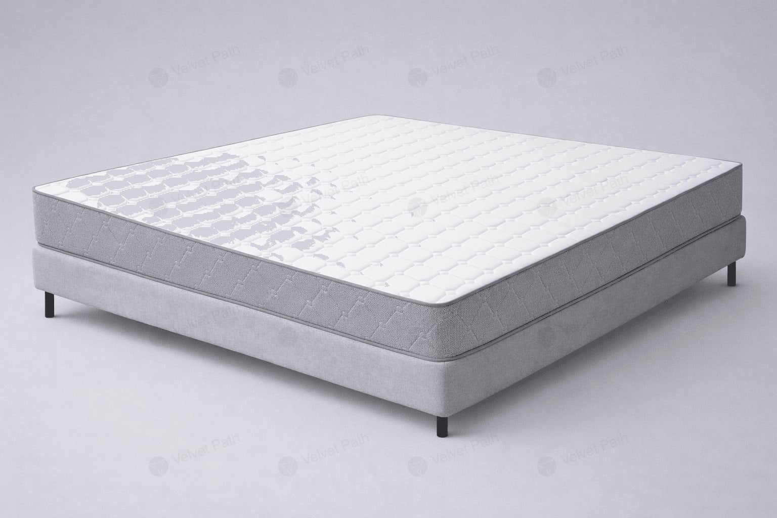 Верхняя поверхность выполнена из трикотажа плотностью 300 г/м2, а чехол сделан из мягкого и комфортного стёганого хлопка. Такое сочетание даёт приятный контакт с телом и аккуратный внешний вид, который сохраняет опрятность при ежедневном использовании.