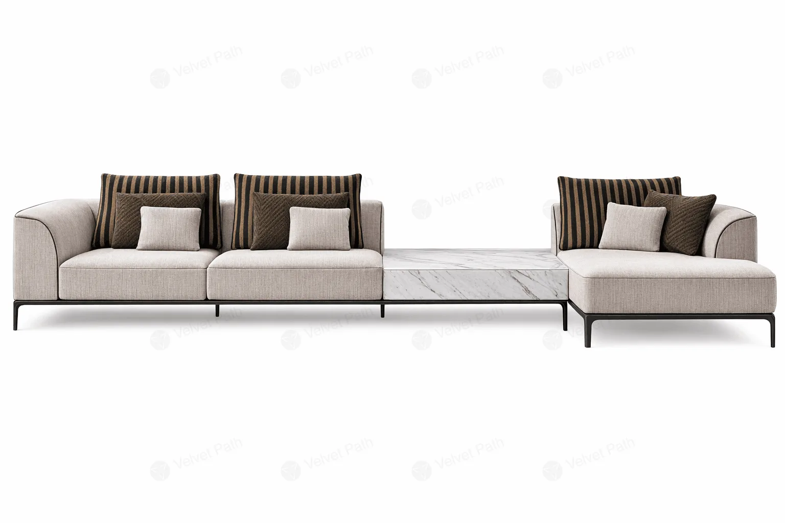 Модульный диван Fendi-23 с металлическими подлокотниками и спинкой