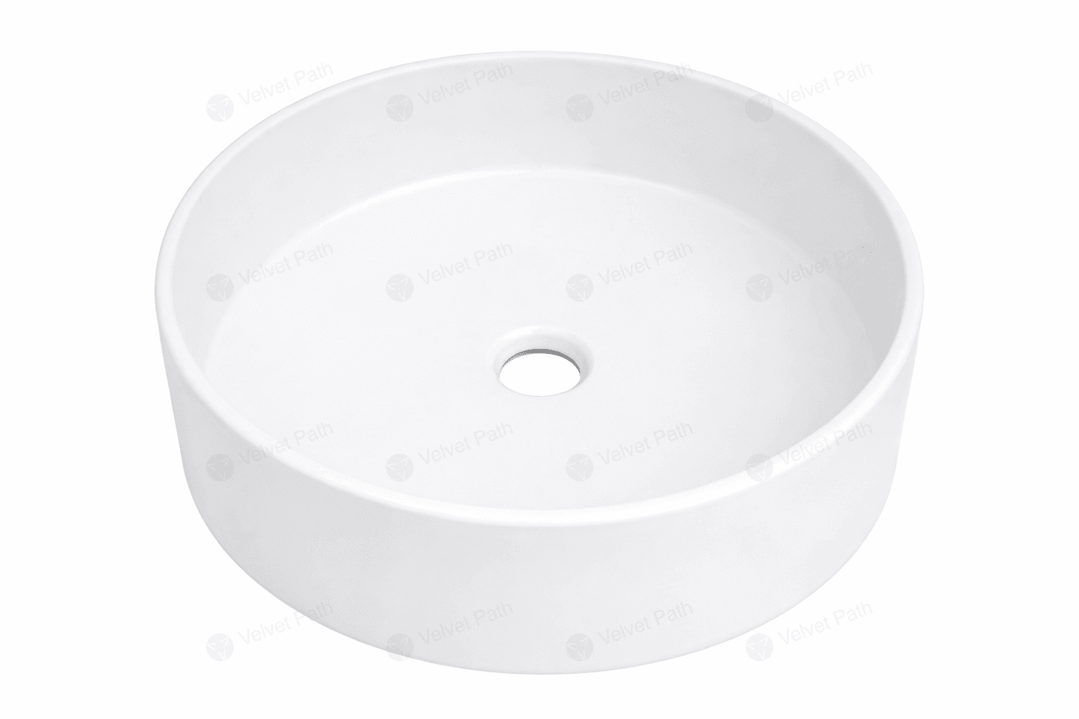 Круглая форма чаши делает модель универсальной для современных интерьеров, где требуется мягкая геометрия и визуально компактное решение. Раковина устанавливается поверх столешницы, а это упрощает монтаж и позволяет использовать различные варианты столешниц в зависимости от проекта: мебельные, каменные и другие.