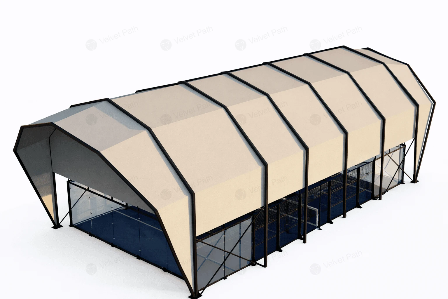 Корт для падела с раздельной крышей, тент PVDF/PVC, стойки сталь или алюминий