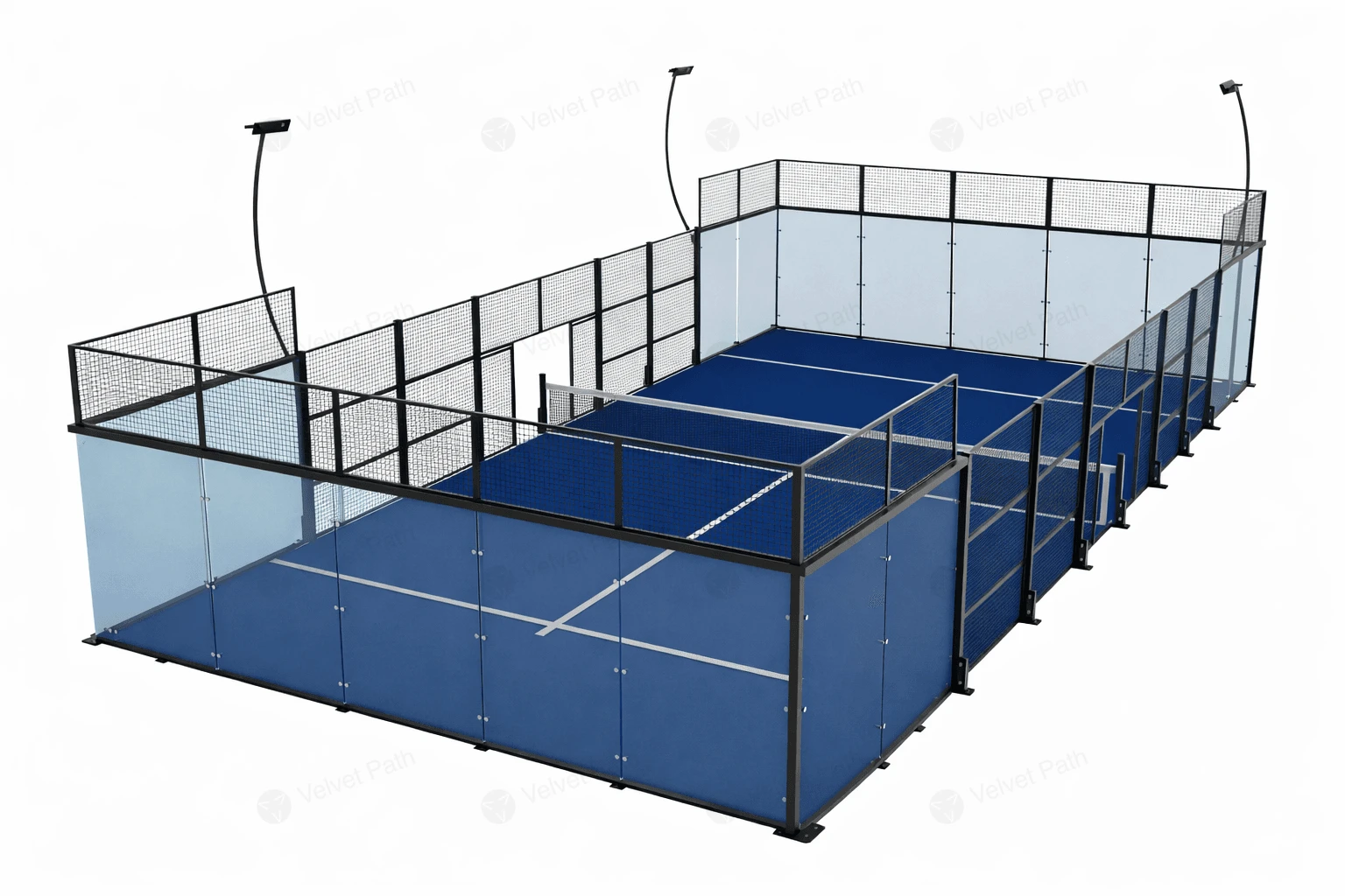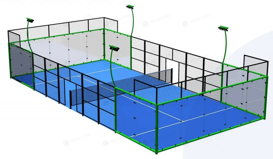 Классический корт для падела 20х10 м, стекло 12 мм, 8 прожекторов 200 Вт
