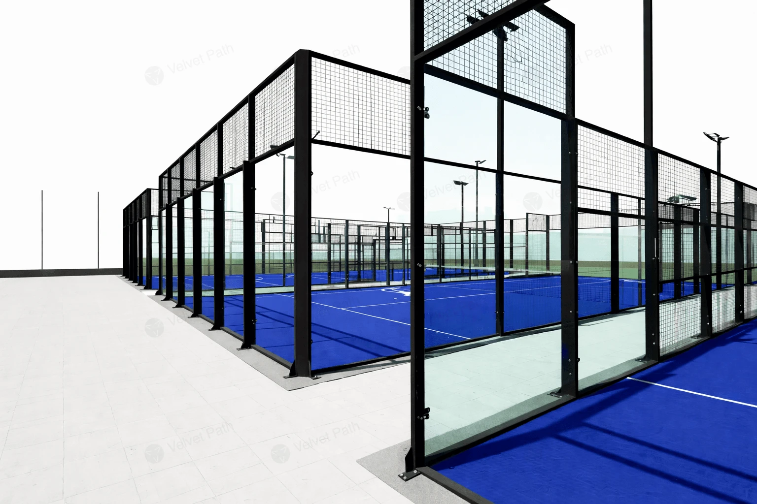 Velvet Path помогает подобрать корты и инфраструктурные решения и организует поставку из Китая напрямую с заводов, с расчётом итоговой стоимости, учётом логистики и таможенных расходов и сопровождением документации.
