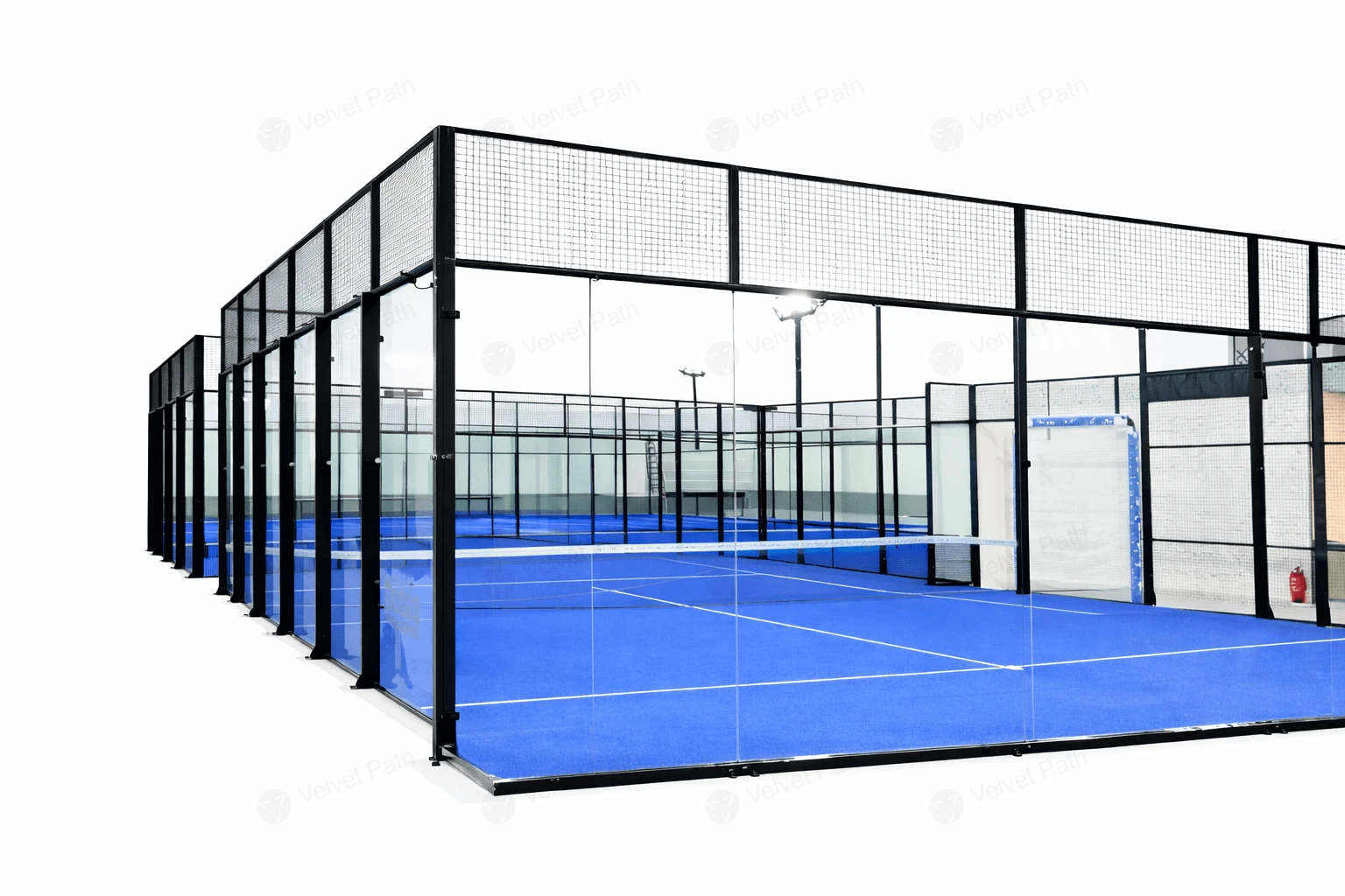 Суперпанорамный корт для падела, стекло 12 мм, оцинкованный каркас, освещение 200 Вт