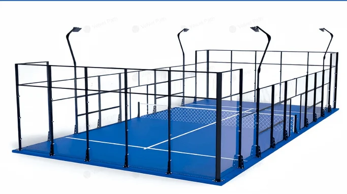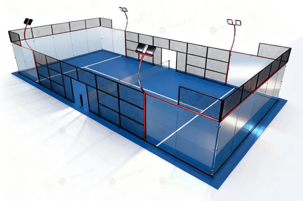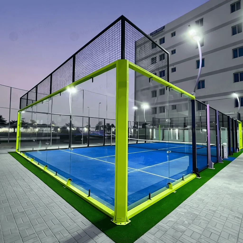 Панорамный корт для падела с ограждением, стеклом 12 мм и освещением 200 Вт