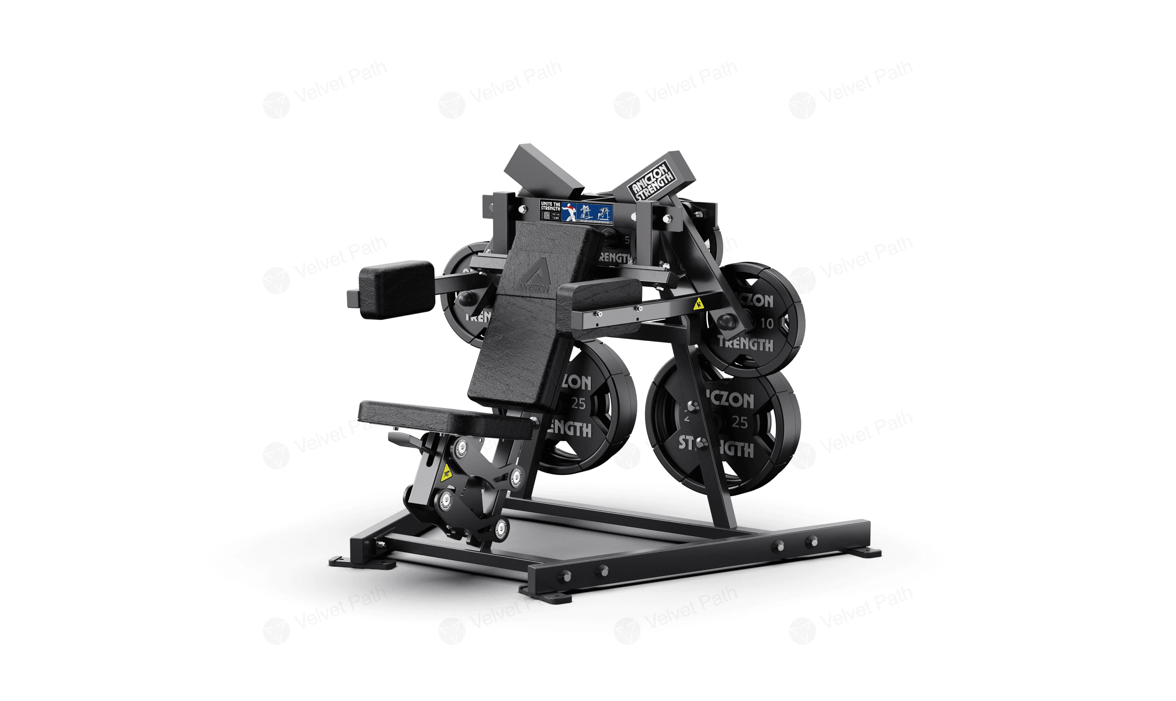 Тренажёр выдерживает нагрузку до 100 кг и подходит для регулярных тренировок. Каркас изготовлен из трубного материала Q235, также предусмотрена возможность использования с навешиваемыми дисками для увеличения сопротивления.