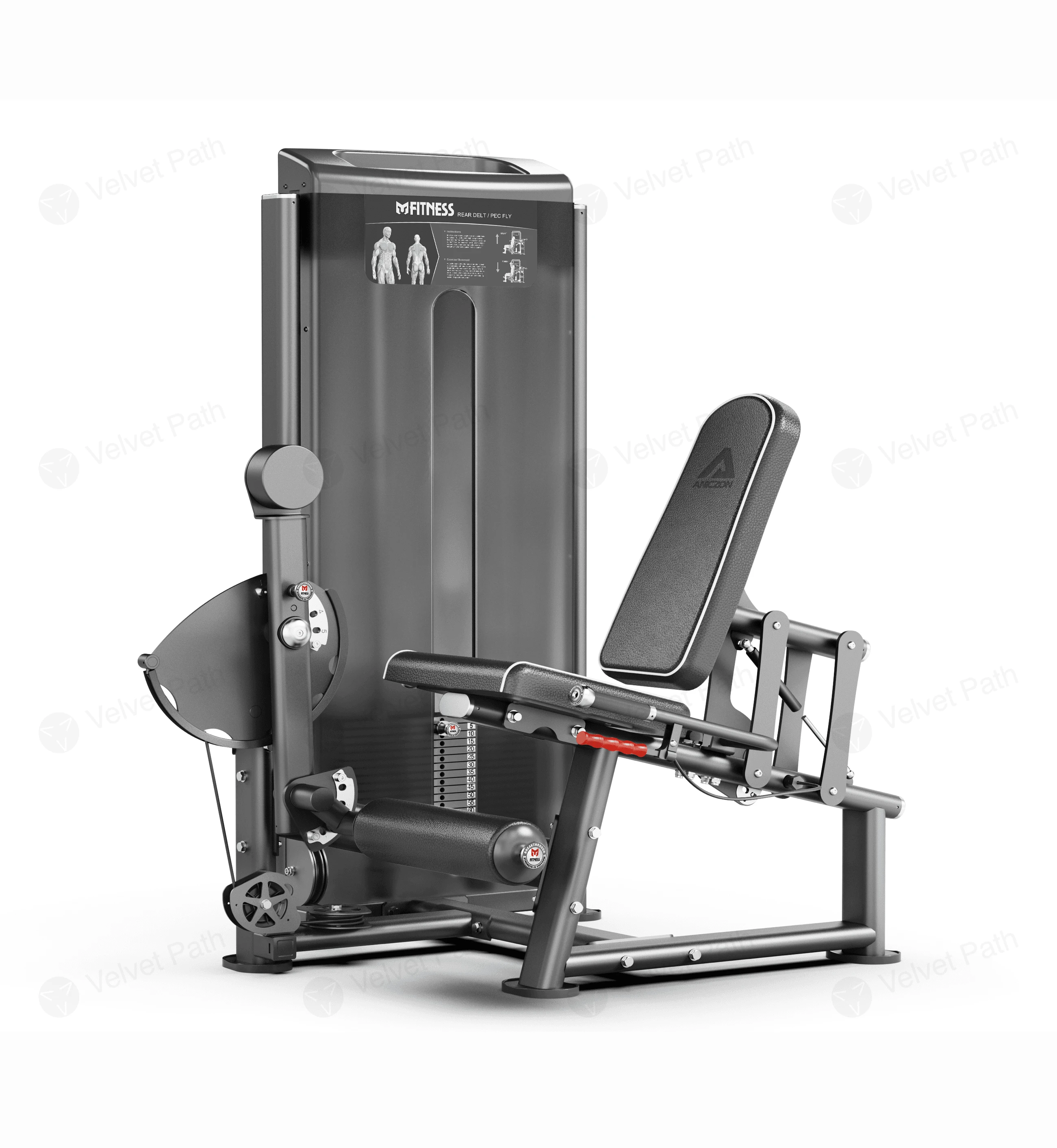 Посадка организована через сиденье и элементы фиксации корпуса и ног, что повышает стабильность во время подхода. Такой формат подходит для персонального тренинга и для группового использования, когда важно быстро переходить между упражнениями без длительных настроек.