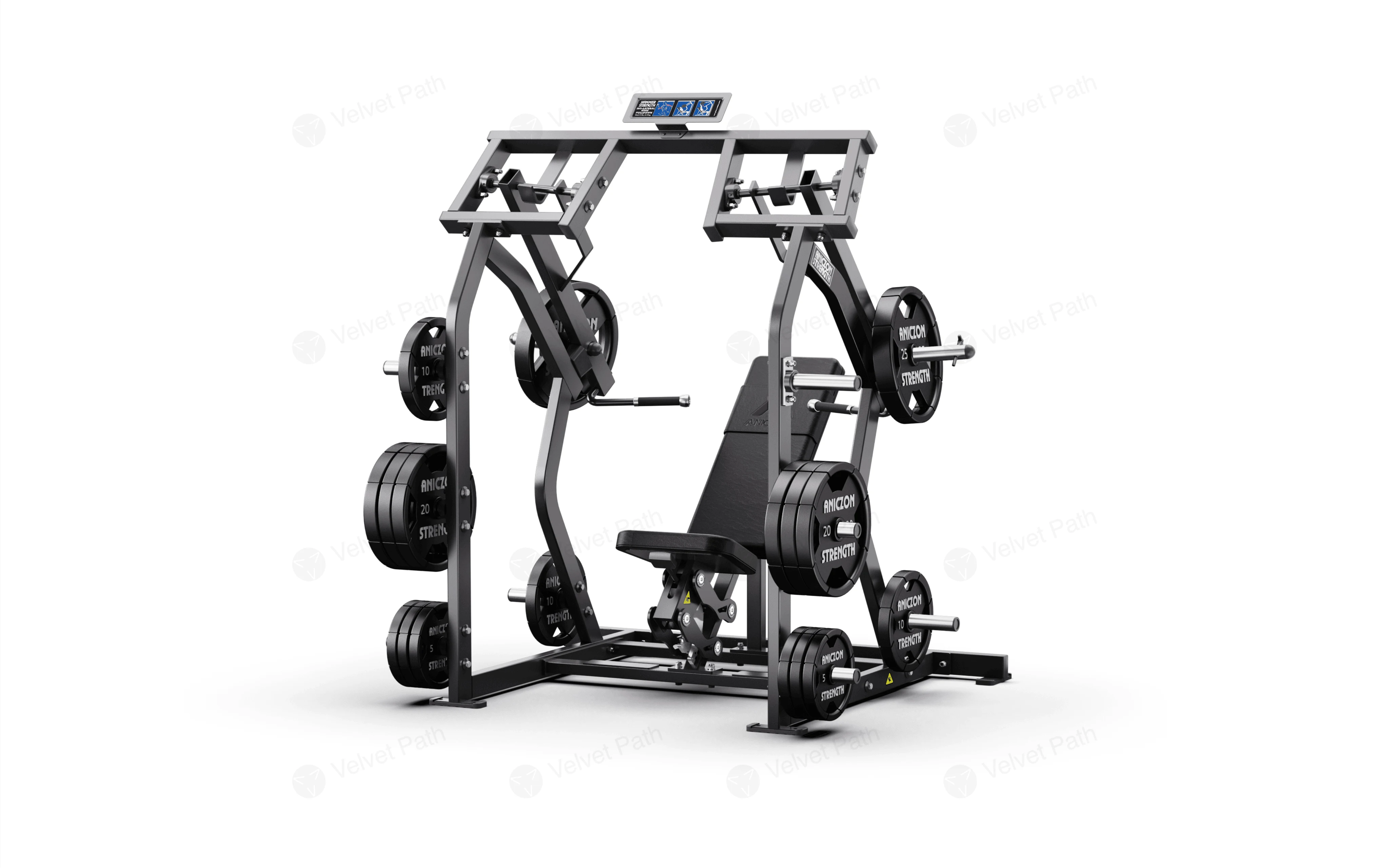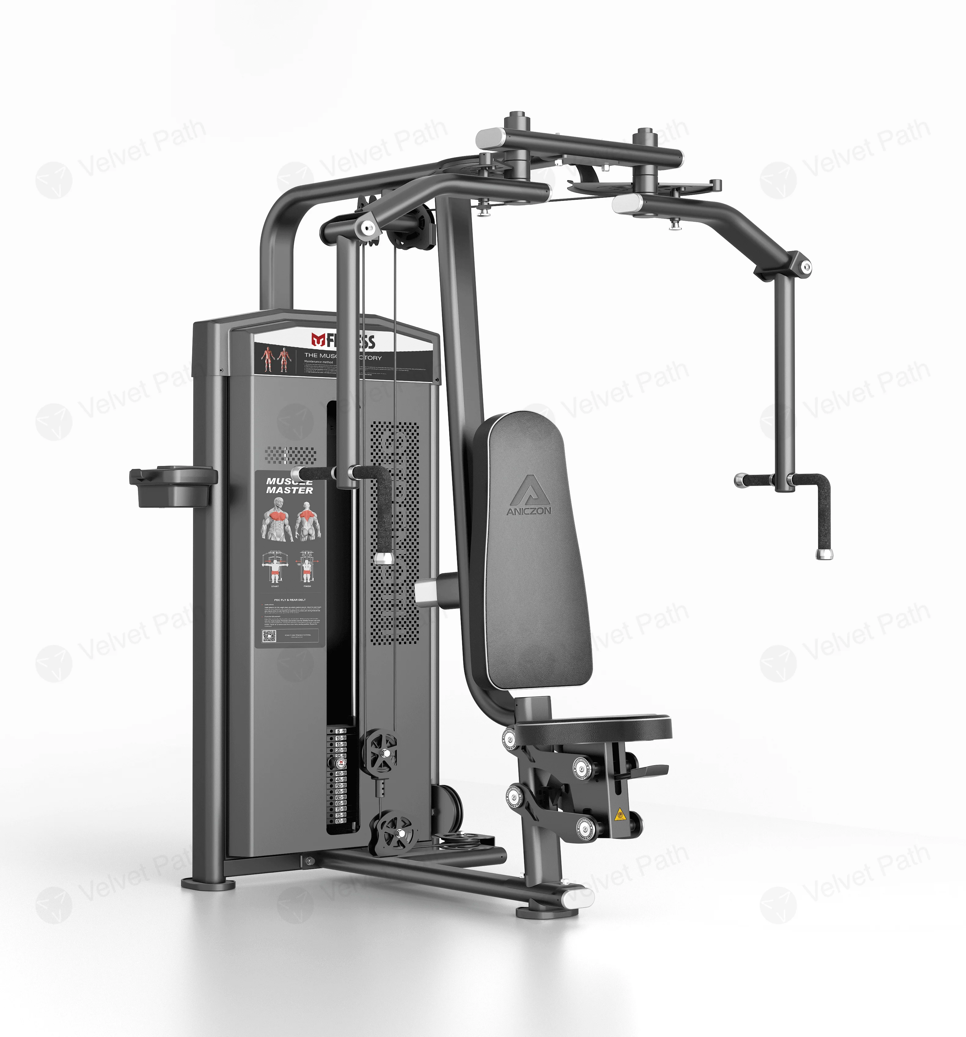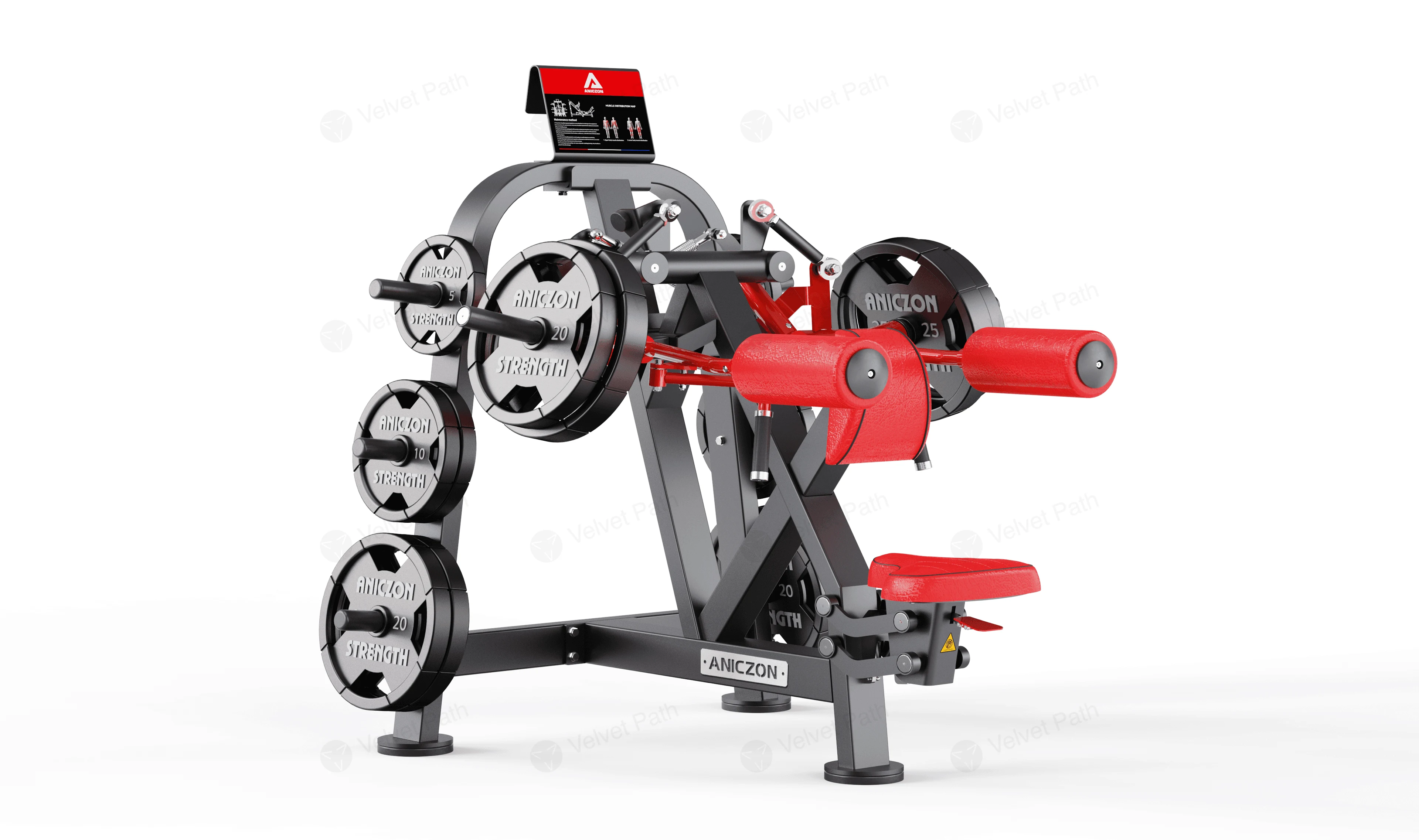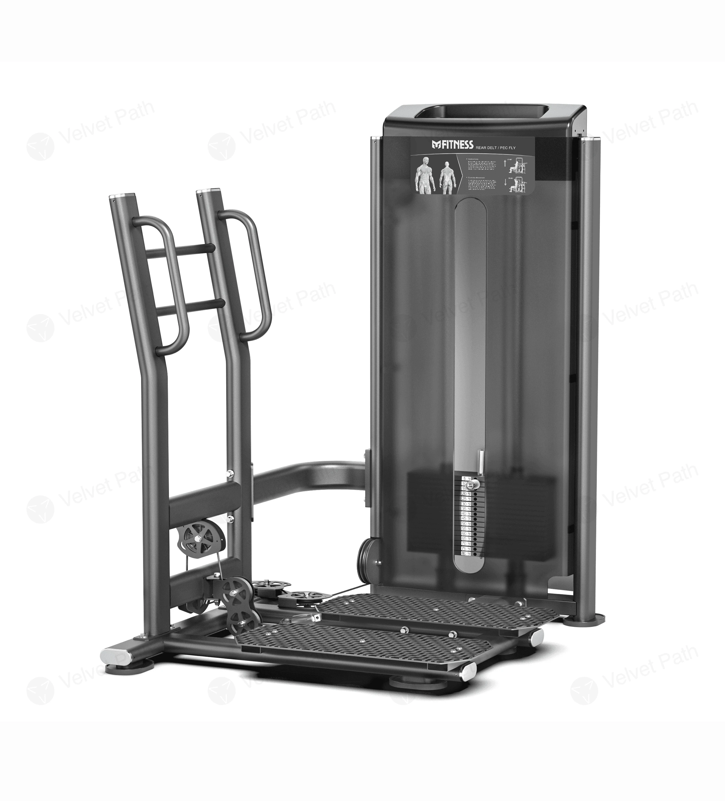 Тренажёр рассчитан на регулярную коммерческую эксплуатацию и удобен для поточного использования. Визуальные подсказки по упражнению размещены на панели на стойке, что помогает быстро ориентироваться в настройке и технике выполнения.
