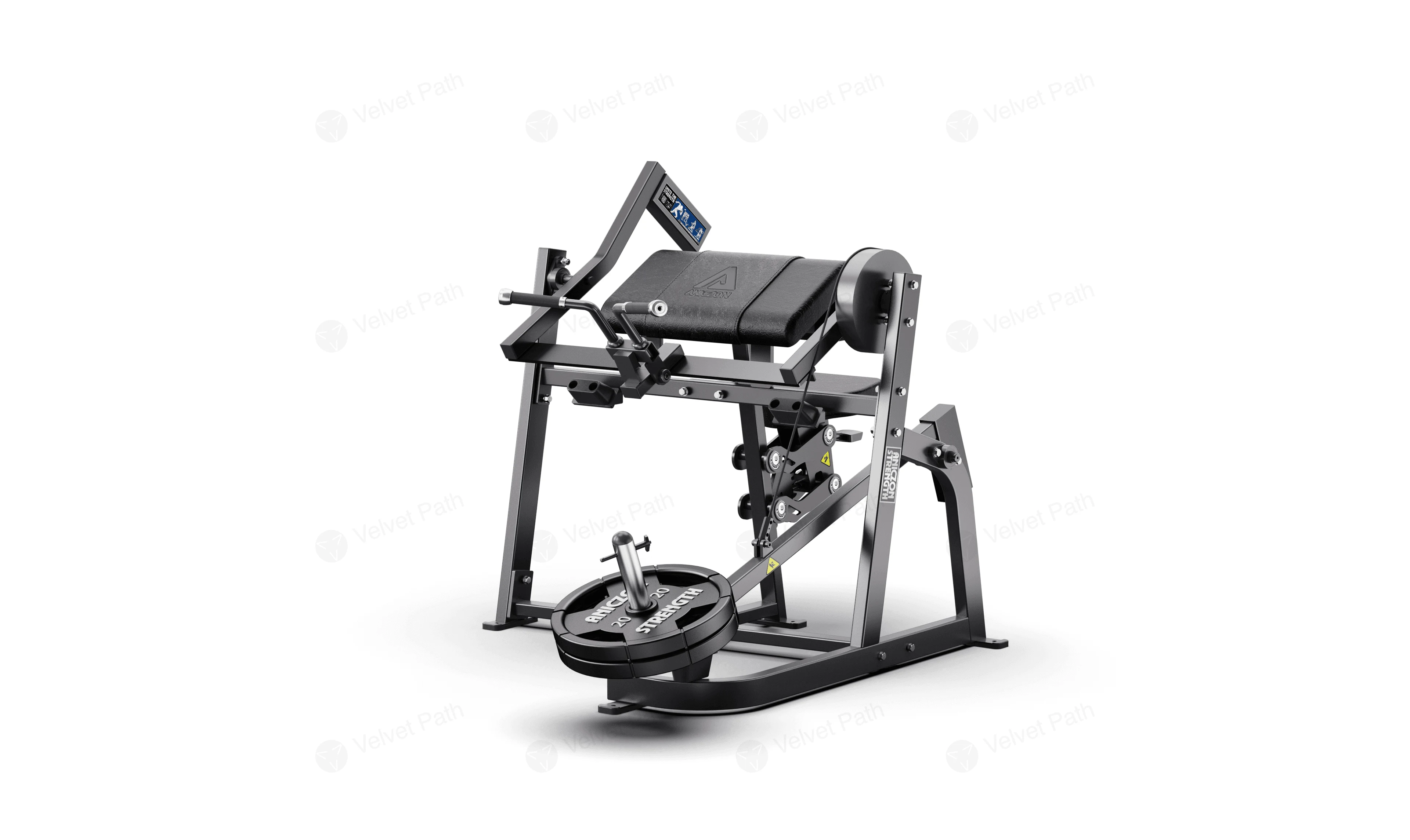 Тренажёр выполнен в сером металлическом каркасе и рассчитан на регулярную работу в коммерческом формате. В конструкции предусмотрены рукоятки с чёрными накладками для уверенного хвата и комфортного выполнения упражнений.