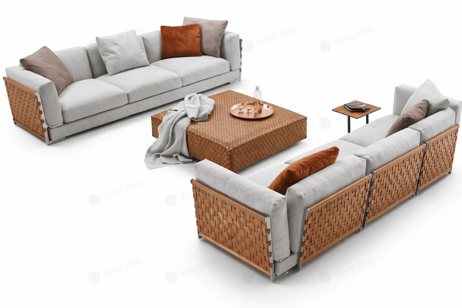 Диваны длиной до 2,3 м выполняются на цельной раме, что упрощает установку и сохраняет чистые линии. При длине более 2,3 м применяется раздельная рама и 2 пары стальных опор; стоимость одной дополнительной пары — 500 RMB.