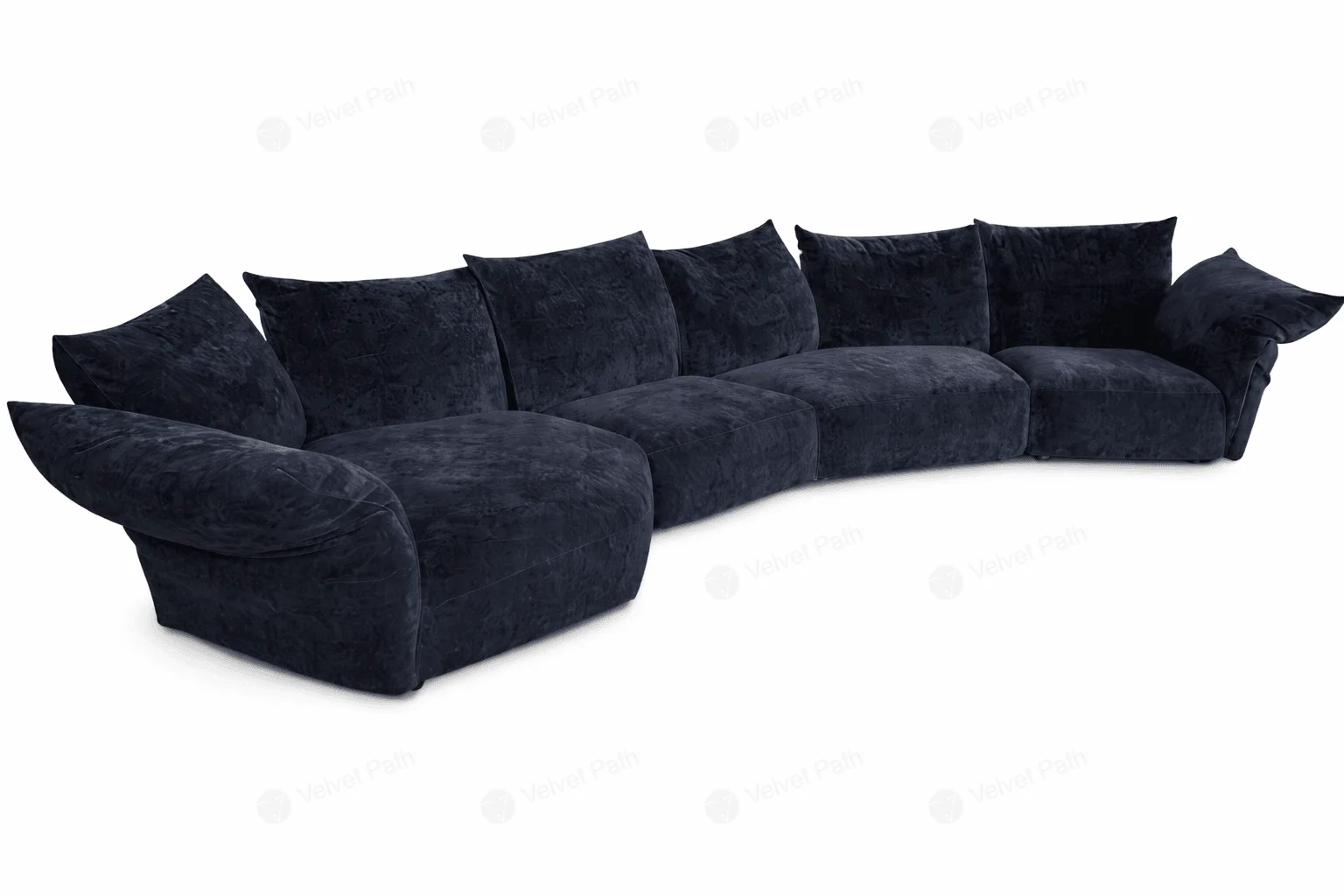 bretz-1 — современный мягкий угловой диван с шезлонгом (L-образная секция), рассчитанный на комфортную ежедневную посадку. Низкий силуэт и мягкие объёмные формы делают модель выразительным акцентом в гостиной или лаунж-зоне.