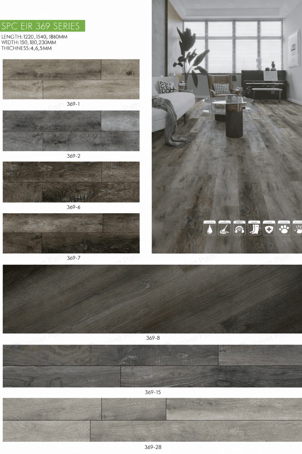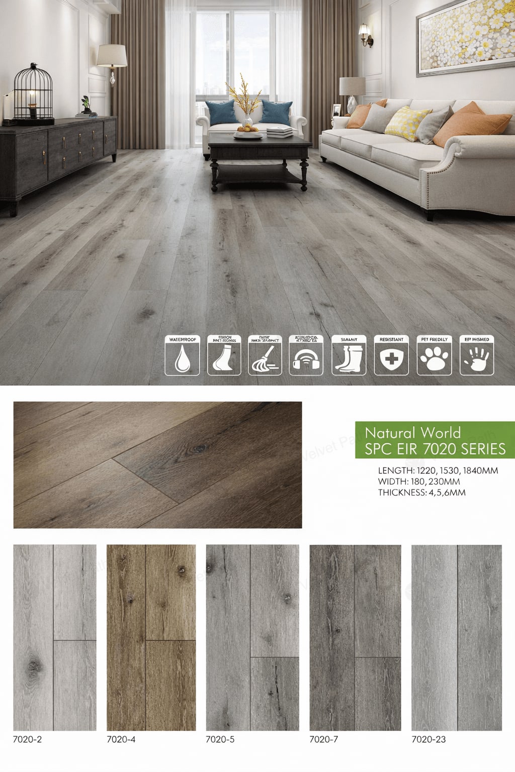 SPC напольное покрытие 0,6 см, износостойкий слой 0,05 см